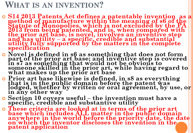 - Novel = New, must be able to prove