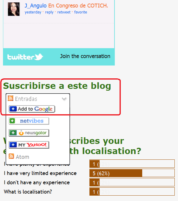 1. 2. Nos suscribimos al ¨ Feed RSS¨del sitio que nos interesa (generalmente estan señalados de color naranja.)