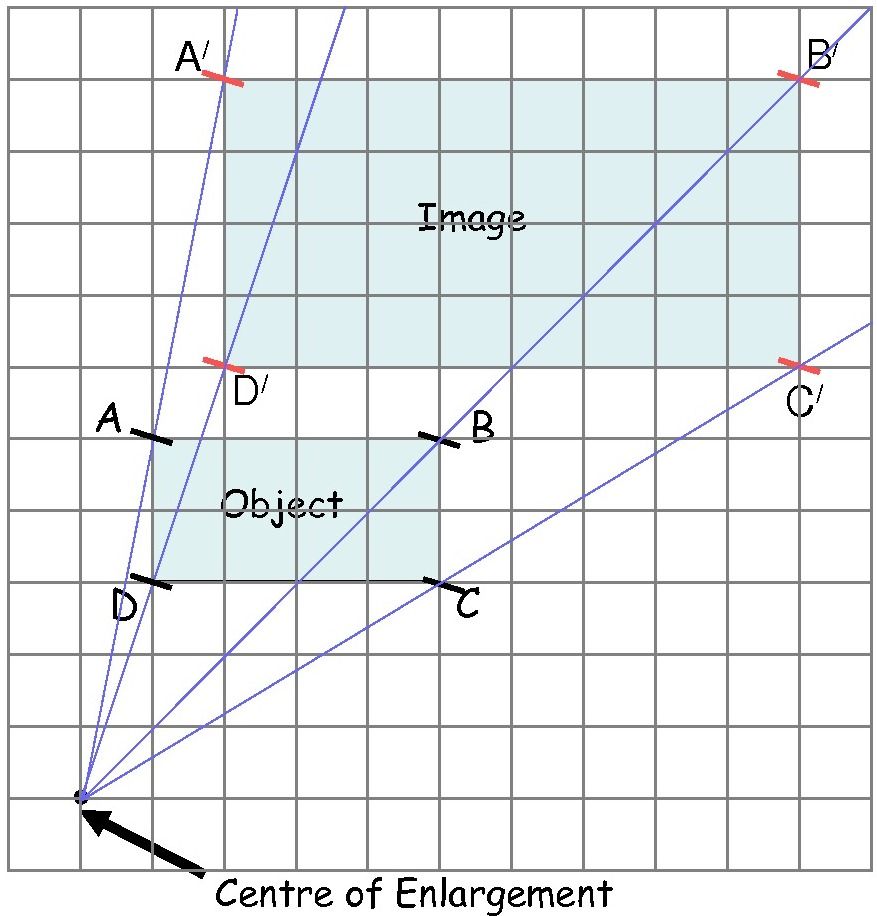 - To find the centre of enlargement join two