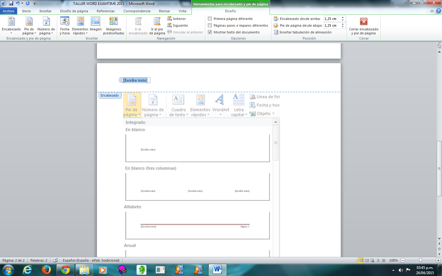 y pie de página ,seleccionar desde que pagina quiere empezar a numerar