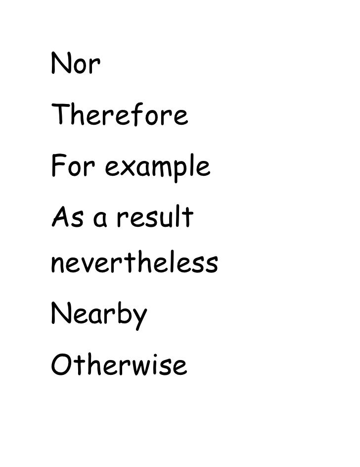 - But, However, In Spite Of, Nevertheless, Etc.
