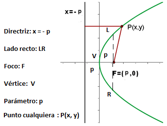 lugar geométrico de los puntos del plano que equidistan de uno llamado foco y una recta llamada directriz