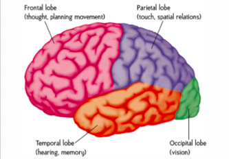 Temporal Lobe: hearing, memoryOccipital Lobe: vision