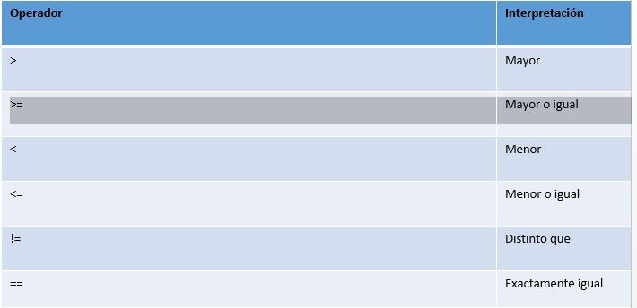 operadores de comparacion