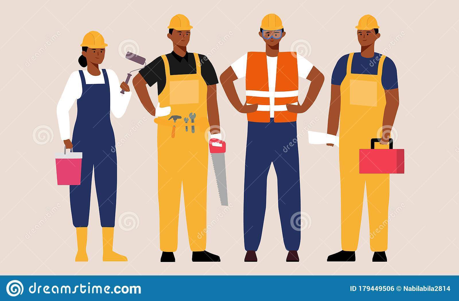 Portrait Migrant Workers Black People Construction Team Labor Group Dark Skin Cartoon Character Illustration Set 179449506 (image/jpeg)