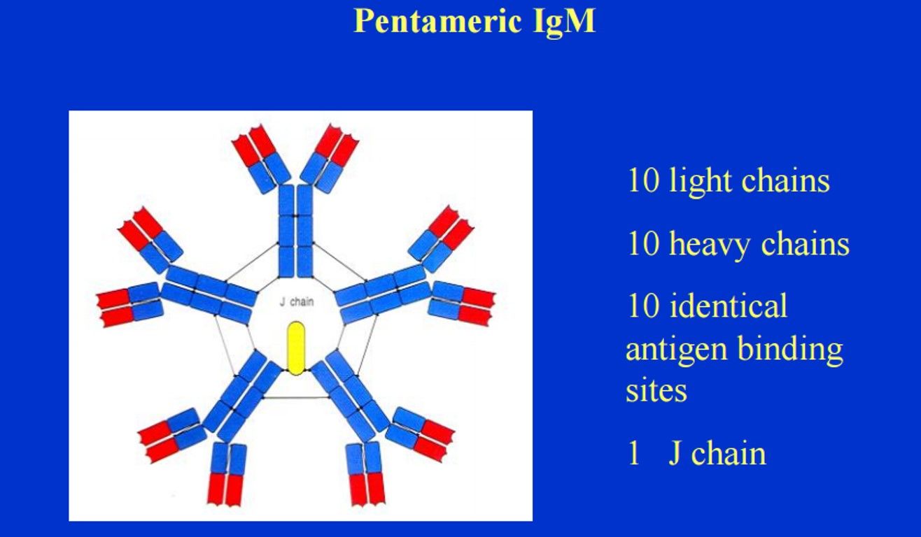 H chains (identical), means there are 10 identical antigen binding sites. There is 1 J chain.