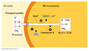 - 1) Pyruvate moves into the mitochondrial matrix and 1 carbon (CO2) is removed