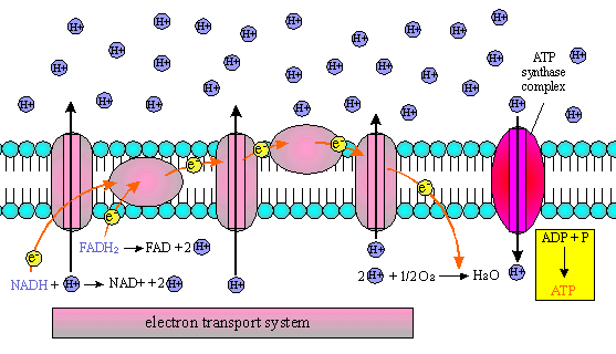 - 1) NADH and FADH2 enter the electron transport system in the inner mitochondrial membrane