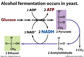 2) NAD+ is reduced into NADH and an intermediate acetic acid is the result