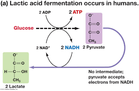- 1) Pyruvate from glycolysis is reduced into lactic acid by NADH as it is oxidized into NAD+