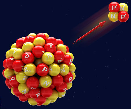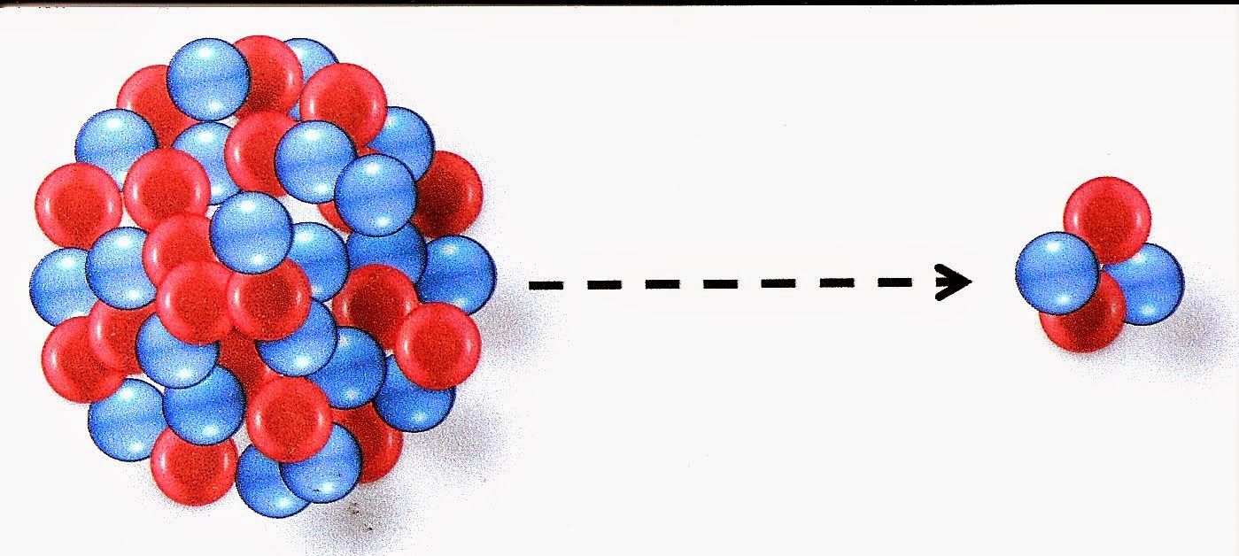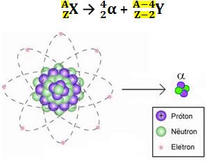 radiação alfa a partir do núcleo de um átomo.