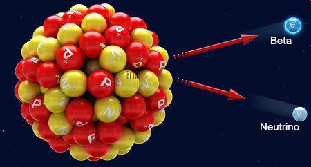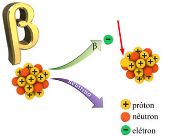 - trata da emissão de uma radiação beta a partir do núcleo de um átomo.