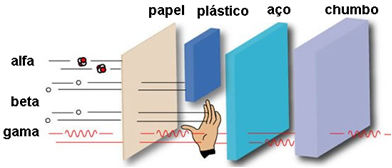 causar danos sérios. Já as partículas gama atravessam 15 cm de aço e são detidas por