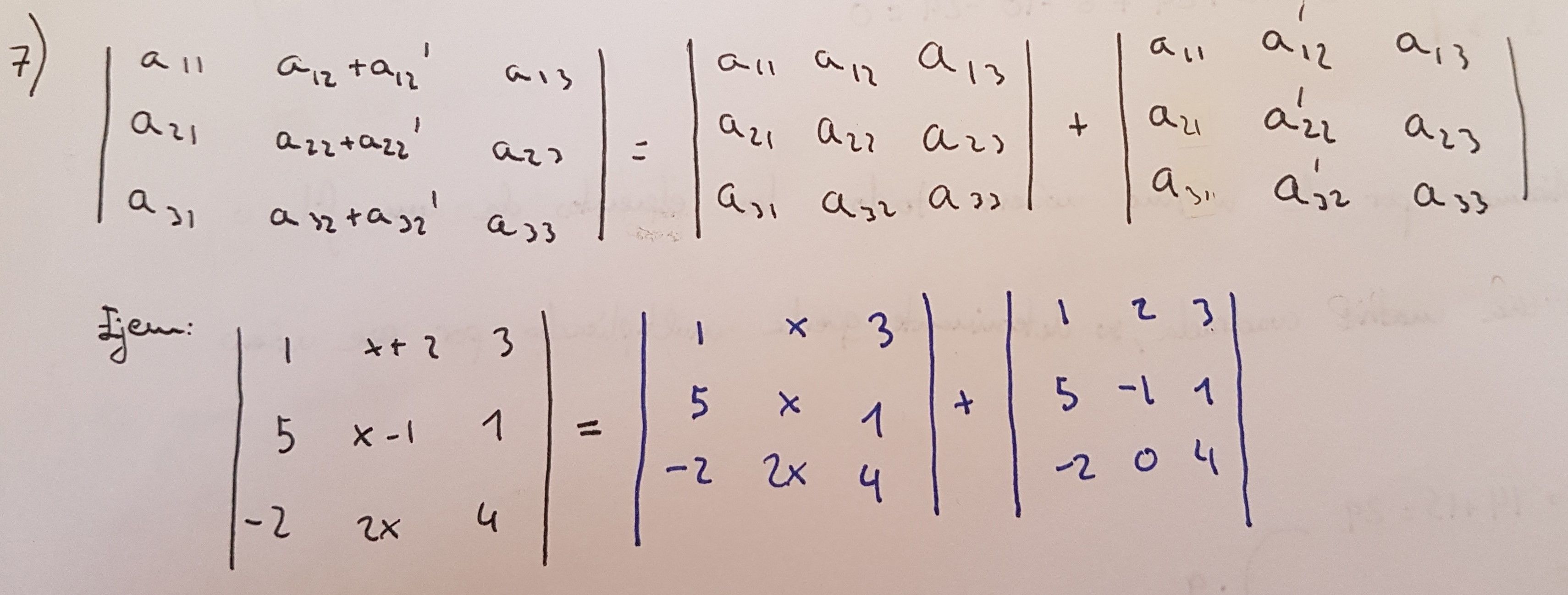 - 9) Si una matriz tiene fila o columna que es combinacion lineal de los demas, entonces su determinante es 0, y viceversa.