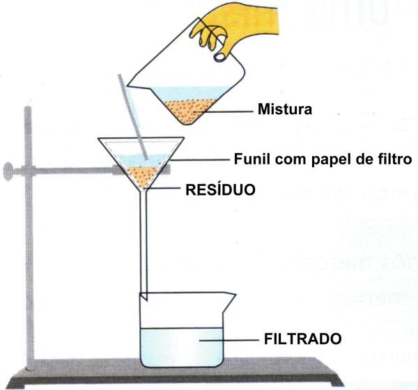 - Se baseia na passagem da mistura por um funil forrado com papel de filtro, em que o sólido tenha partículas maiores que os orifícios do papel de filtro e o líquido partículas menores.