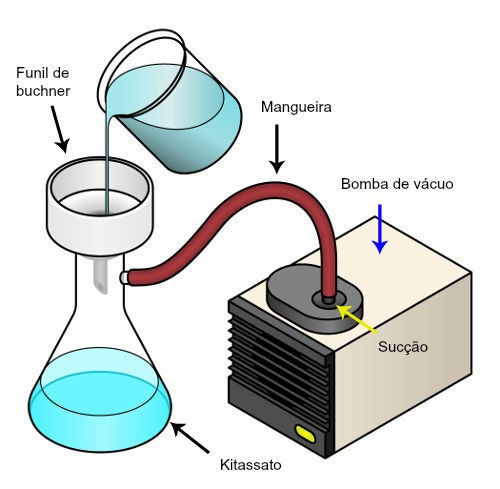 - Se baseia na acelereção da filtração,ou seja, apresneta o mesmo princípio da filtração simples, porém com o uso de uma bomba de vácuo, um kitasato e um funil de büchner.