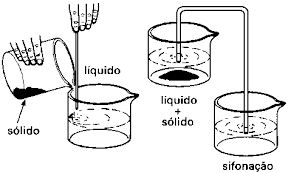 - Se baseia virar lentamente o recipiente para que saia o líquido e o sólido continue no fundo do copo. Não é tão preciso quanto a filtração.