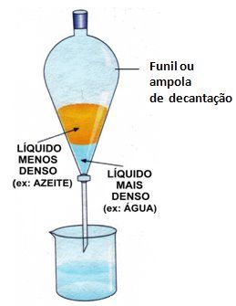 - Se baseia em um funil junto com uma torneira. Abrir a torneira para o líquido mais denso passar, fechar, trocar o recipiente de baixo, e abrir novamente para o líquido menos denso.
