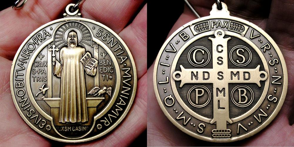 - La medalla de San Benito tienen a un lado la imagen de la Cruz y en el otro la del Santo Patriarca.