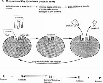 (p) Explain the mode of action of enzymes in terms of an active site, enzyme-substrate complex, lowering of Ea & enzyme specificity using lock-and-key hypothesis & Induced ft hypotheses.