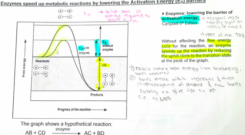 -Molecular basis of enzyme action: Molecular mechanisms which contribute to a lowering of Ea → enabling a rxn to occur at a lower temp