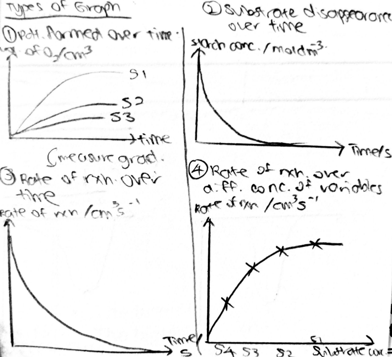 (q) Investigate & explain effects of temp & pH, enzyme conc & substrate conc of an enzyme-catalysed rxn by measuring rates of formation of products or rate of disappearance of substrate