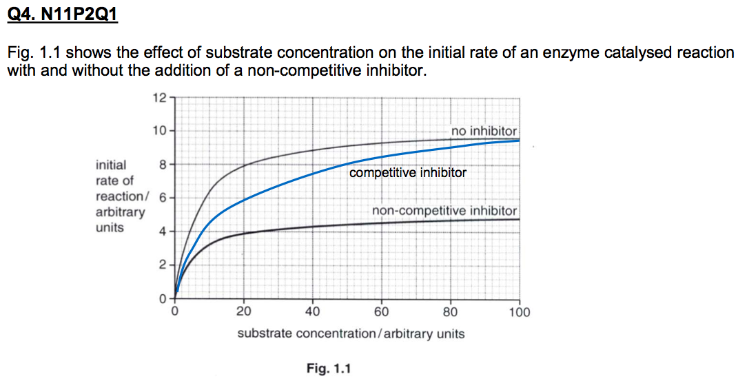 Tutorial 1(c) Explain effect of a competitive inhibitor on rate of enzyme catalysed reaction.[3]