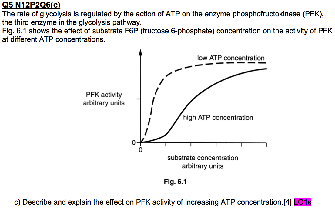 At high ATP cons, high [S], substrate binds to AT site & exhibit cooperativity → S-SHAPED GRAPH