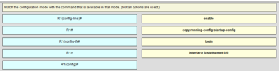 Match the configuration mode with the command that is available in that mode.