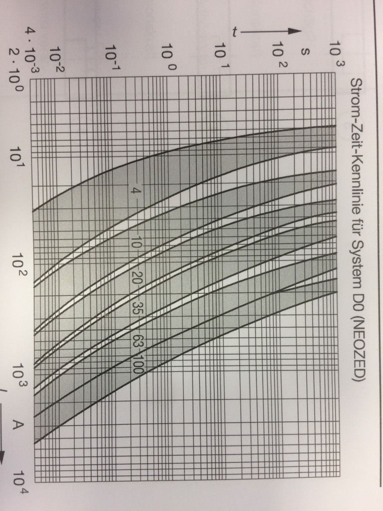Der Kurzschlussstrom in einer elektrischen Anlage beträgt 100 A. In welcher Zeit löst eine Schmelzsicherung mit einem Bemessungsstrom von 20 A aus?