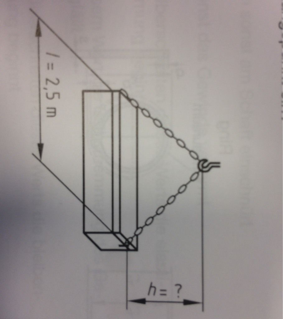 Eine Kiste mit der Länge l= 2,5m soll mit zwei 2m langen Ketten gehoben werden. In welcher Höhe h (in m) stellt sich der Aufhängepunkt ein?