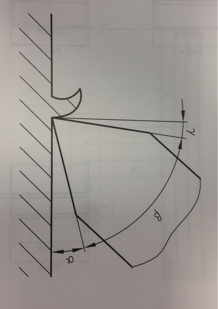 An einem Meißel wurden folgende Winkel gemessen: Freiwinkel Alpha= 7°32' , Spanwinkel Gamma= 14°58'. Welche Größe hat der Keilwinkel Beta?