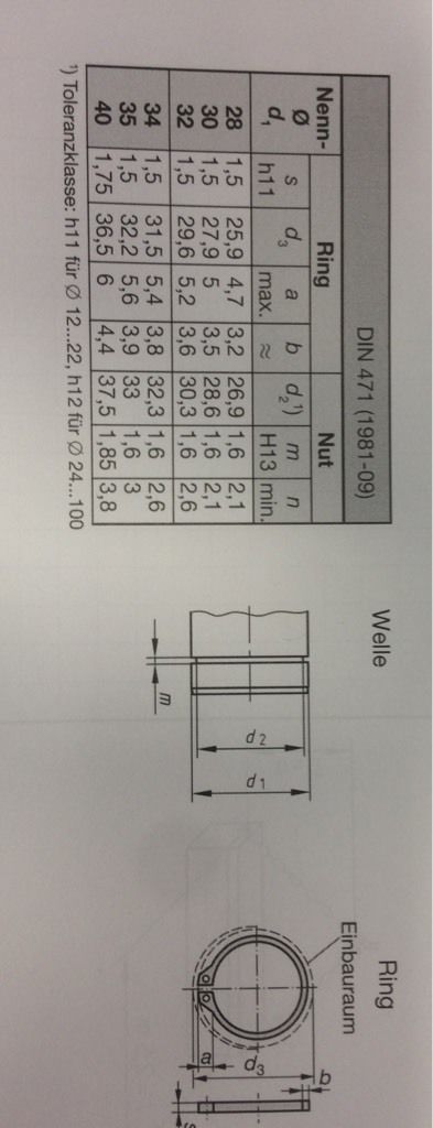 Welches Bild zeigt eine geeignete Wellennut für einen Sicherungsring nach DIN 471 mit einem Nenndurchmesser 30 mm?