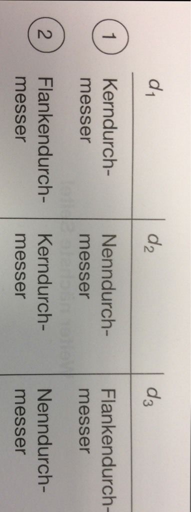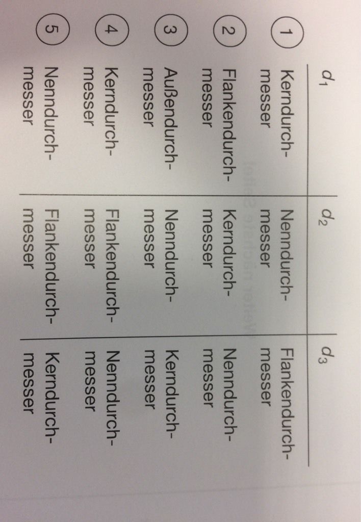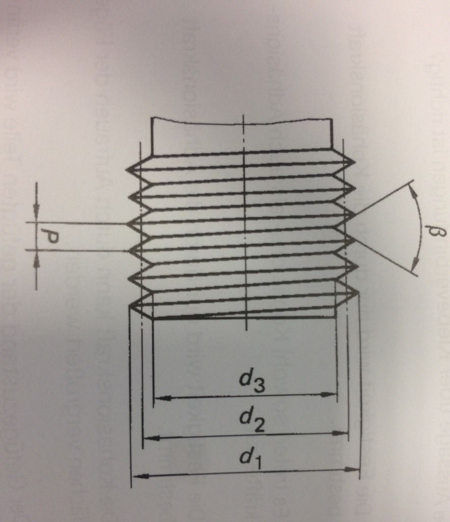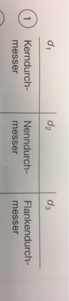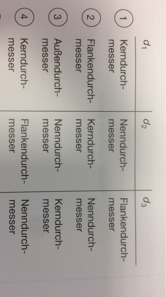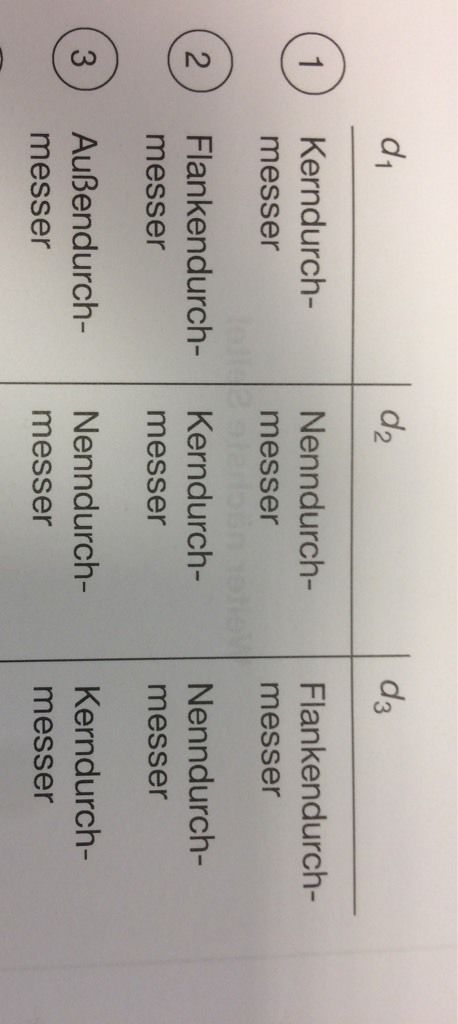 In welcher Auswahl Antwort sind die mit d1, d2 und d3 gekennzeichneten Gewindemaße richtig angegeben?