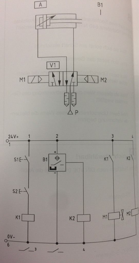 Durch Betätigung des Endschalters B1 schaltet das Relais M1.