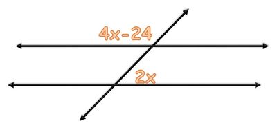 2 parallel lines cut by a transversal. Find the value of the obtuse angle.