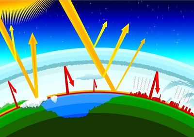 Se llama efecto invernadero al fenómeno por el que determinados gases componentes de una atmosfera planetaria retienen parte de la energía que el suelo emite al haber sido calentado por la radiación solar.
