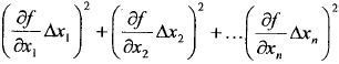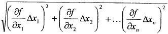 Przy pomiarze pośrednim, w którym wynik pomiaru y oblicza się na podstawie wyników pomiarów bezpośrednich x1,x2,....xn (y=f(x1,x2,....xn)), błąd prawdopodobny (błąd średni kwadratowy) wyraża się wzorem: