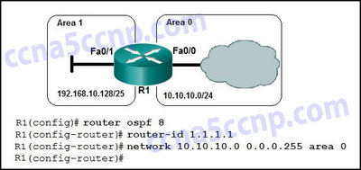 r1(config-router)# network 192.168.0.0 0.0.0.255 area 1