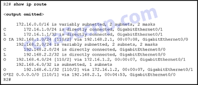 The routing table contains two intra-area routes.