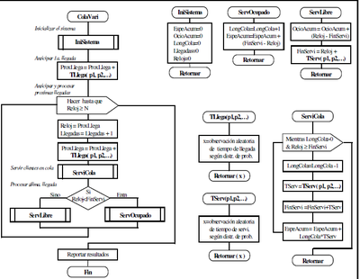 **Por ejemplo, para simular el arribo de un taxi con huéspedes a la puerta de un hotel se utilizaría un generador de observaciones aleatorias con distribución exponencial como TaxiLlega(m), donde m es la media del tiempo entre llegadas especificado en el modelo del sistema.