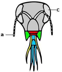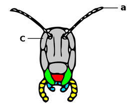 Am Kopf hat sie kräftige beißend-kauende Mundwerkzeuge.