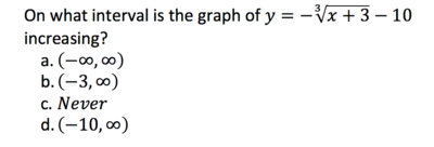 b) Where is the graph increasing? [blank_start]Never[blank_end]