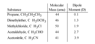 Based on molecular mass and dipole moment of the five compounds in the table below, which should have the highest boiling point?