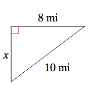 Find the missing side of each triangle. Round your answer to the nearest tenth if necessary. x = [blank_start]6[blank_end] mi