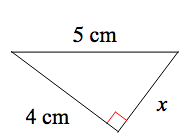 Find the missing side of each triangle. Round your answer to the nearest tenth if necessary. x = [blank_start]3[blank_end] cm