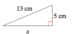 ind the missing side of each triangle. Round your answer to the nearest tenth if necessary. x = [blank_start]12[blank_end] cm