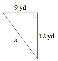 ind the missing side of each triangle. Round your answer to the nearest tenth if necessary. x = [blank_start]15[blank_end] yd