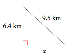 ind the missing side of each triangle. Round your answer to the nearest tenth if necessary. x = [blank_start]7[blank_end] km