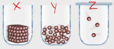Looking at the picture, which of the following choices shows the correct states of matter for each letter?